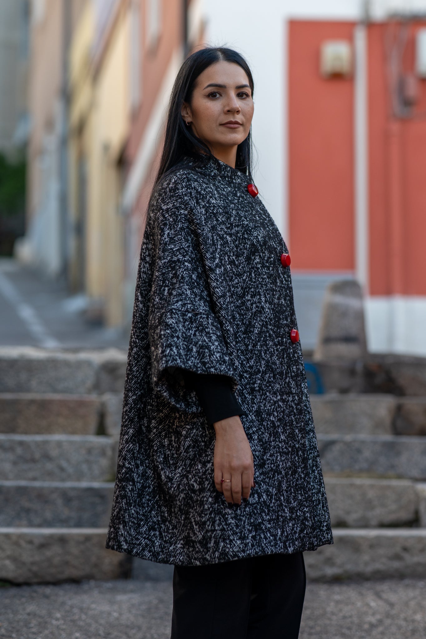 Calù • Cappotto in lana, cachemire spigato sale e pepe