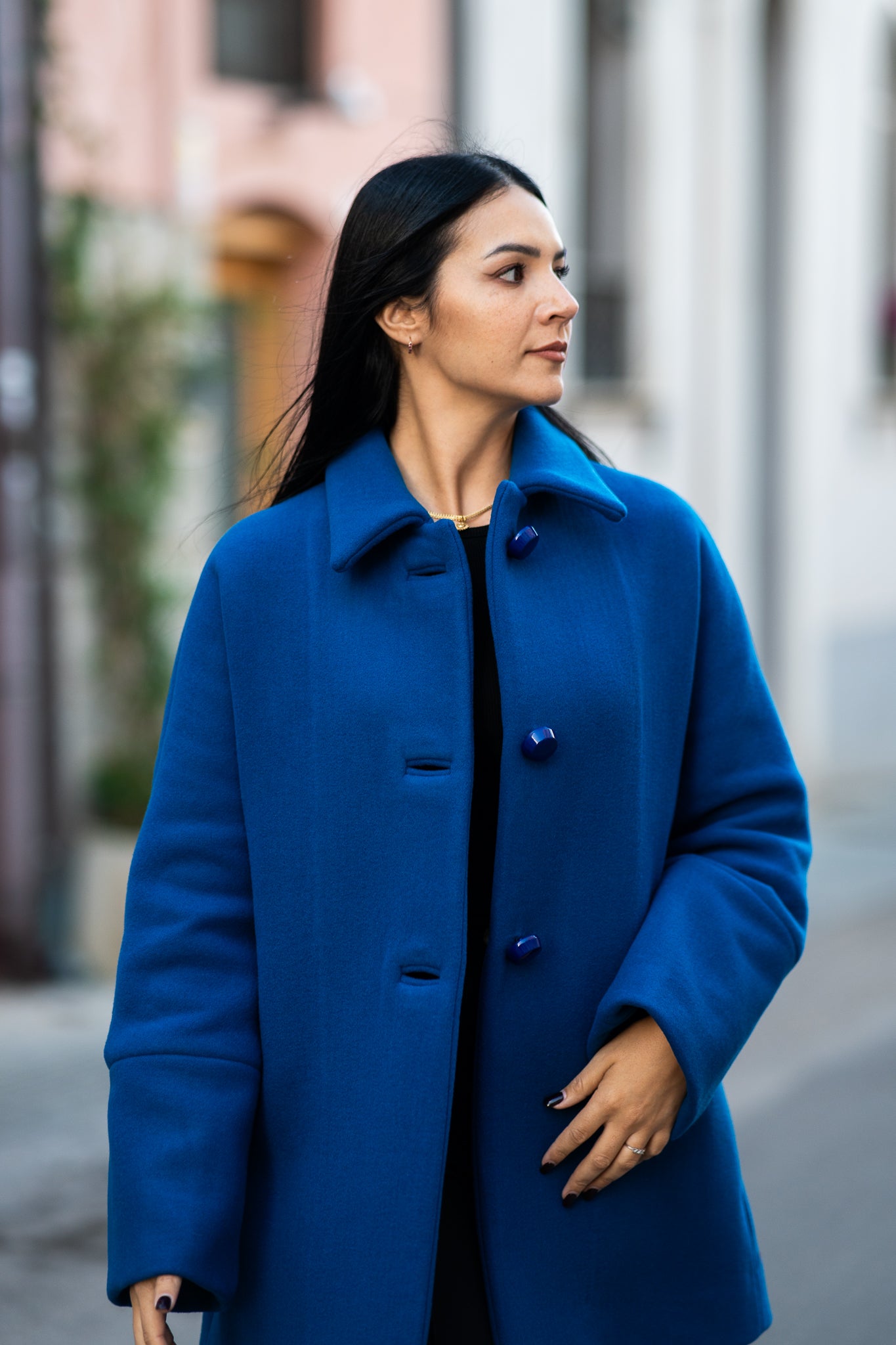 Chiusura con bottoni a vista e asola profilata.